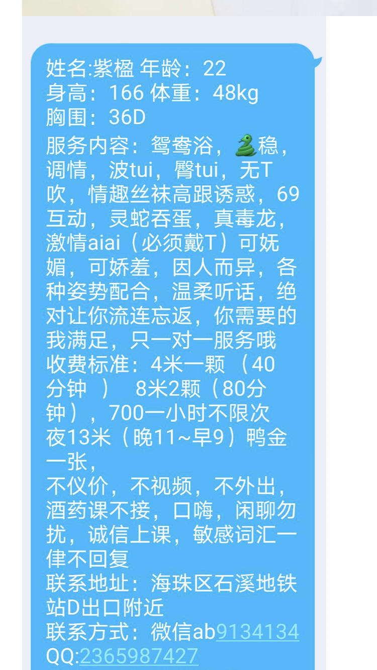 照片和本人有点偏差,美颜过没P,付完之后就会让你删除聊天记录和付款记录,这一点挺有安全意识,然后就开 ...